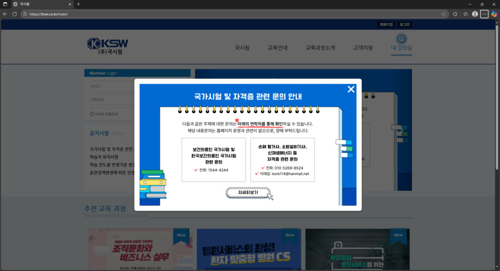보통 매년 1월경, 국시원 홈페이지의 ‘공지사항’을 통해 그 해의 필기, 실기, 연수 등 전체 세부 일정이 담긴 계획이 공고됩니다. 자격증을 준비한다면 연초에 반드시 공지사항을 확인하여 계획을 세워야 합니다.