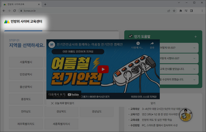 사이버 민방위 교육 홈페이지 : https://www.kcmes.or.kr/