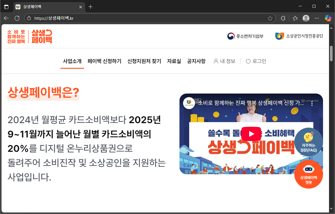 상생페이백 신청 홈페이지 (상생페이백.kr)